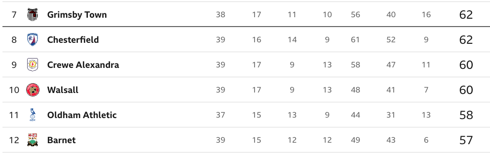 With 7/8/9 matches to go, fixture difficulty becomes more important as the games run out, and different teams have very different paths ahead. For that reason, Barnet, Oldham and Colchester don’t necessarily occupy false positions, but perhaps what-might-have-been positions.