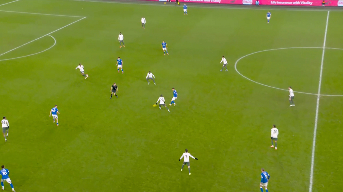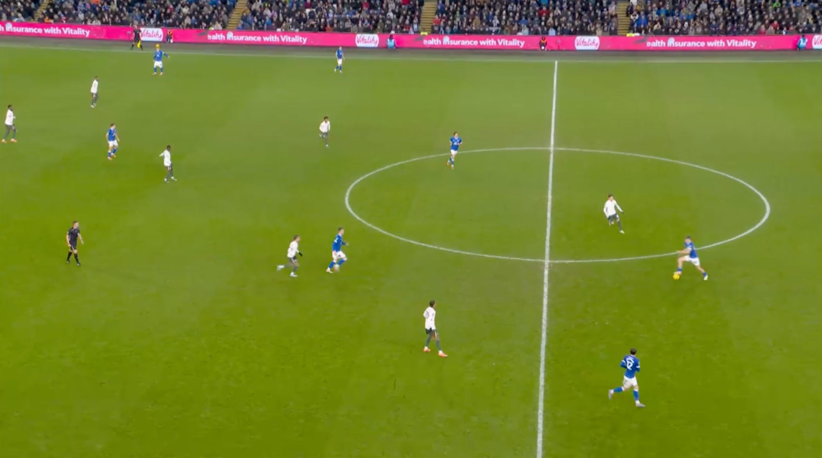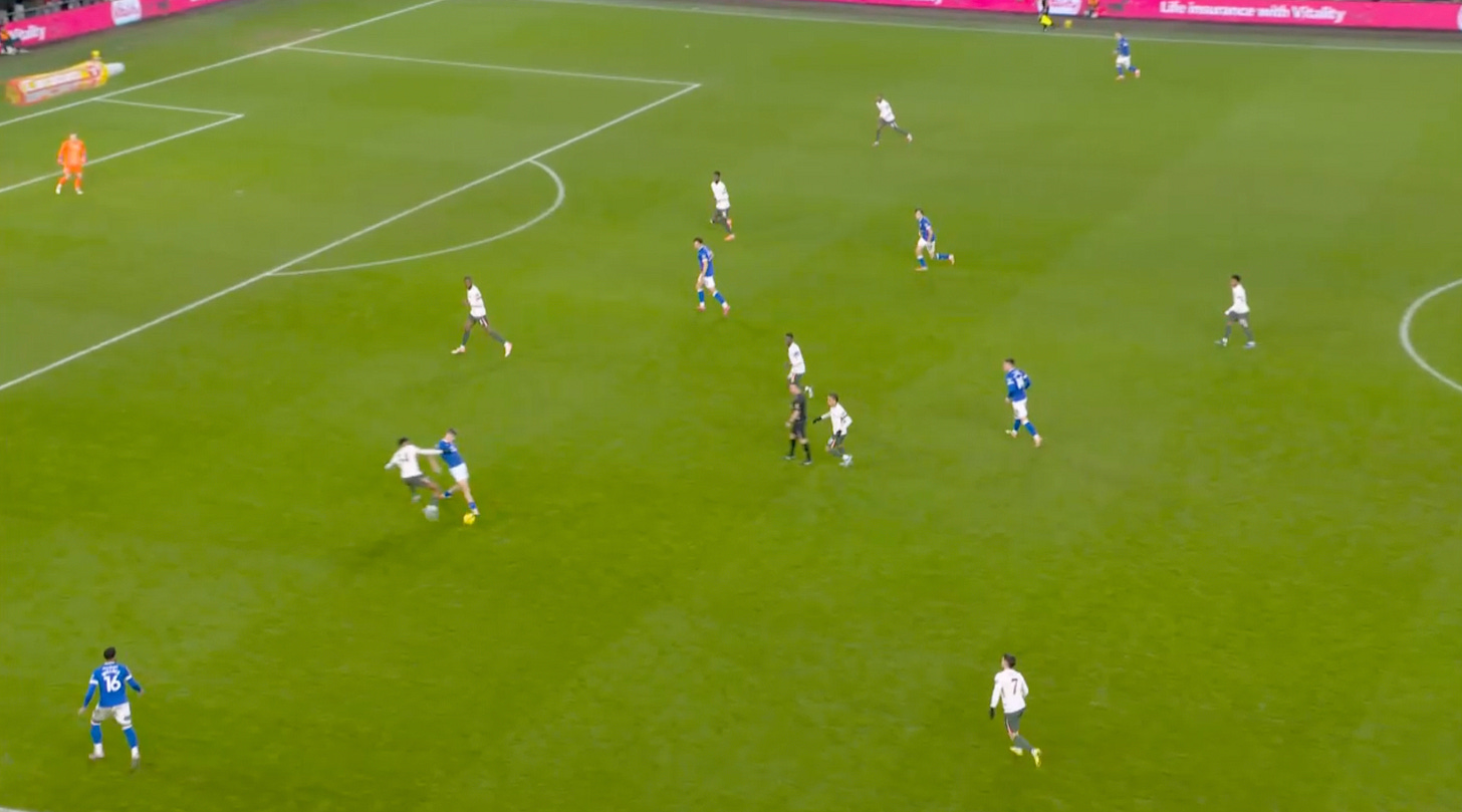 ^…Lawlor has forced Chelsea right-back Josh Acheampong out of position, allowing him to flick the ball out to winger Chris Willock, who is now in plenty of space. Willock attacks the box and Cardiff almost create an excellent chance as a result.
