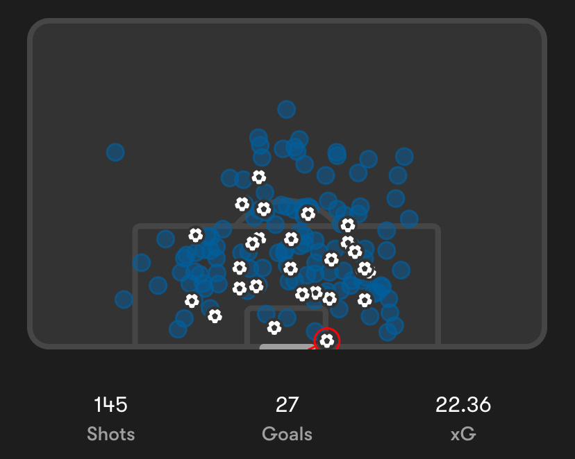 🎯 BULLSEYE — Sam Szmodics scored 45% of Blackburn’s league goals this season. Here are all 145 shots and where the 27 goals came from: