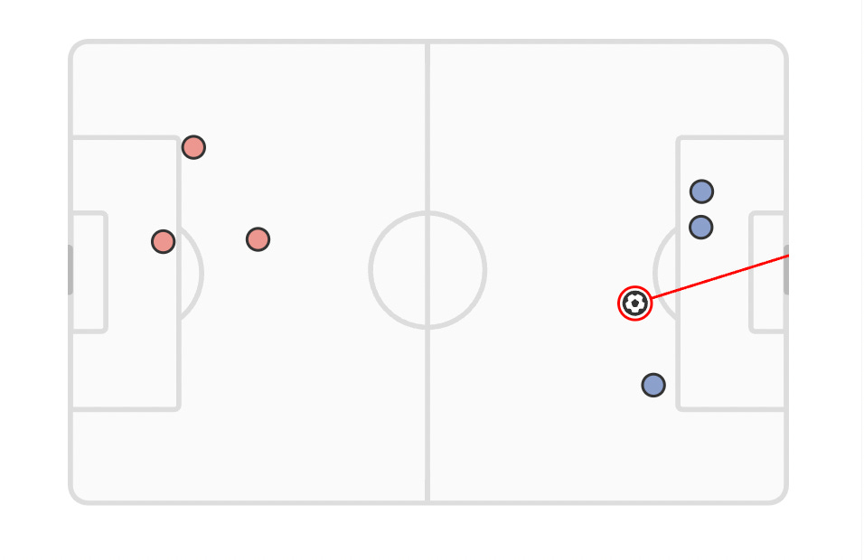 A minute later, Abdul Fatawu was a bit jacked up on the adrenaline of it all, and flew in late on Jake Bidwell. Red card.