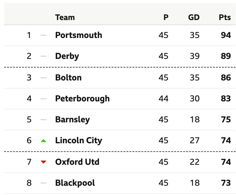It wasn’t as close as the scoreline suggests, with Blackpool leading 3-0 after the break, but Barnsley did come back into it and were refused their appeals for a shot crossing the line, between their two goals that definitely did. Having sat in the top six since the turn of the year, the Tykes now face a genuinely nerve-racking final day. A run of one point from five games leaves them needing a win over Northampton to guarantee a play-off berth, knowing that even a draw would leave them at the mercy of Lincoln, Oxford and Blackpool, as any two of those three would overtake Barnsley with a victory. Will sssssomebody stop them?