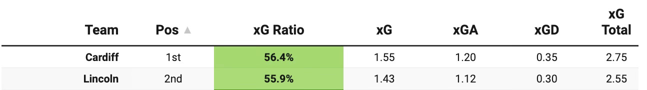 You could barely fit a rizla between the pair’s season-long underlying numbers, but seasons don’t move at a single pace. We are where we are. And if there’s one through-line that should be heeded ahead of this tantalising tie, it would have to be Cardiff’s consistent record of giving up chances to their opponents at a greater rate than Lincoln, all season long.