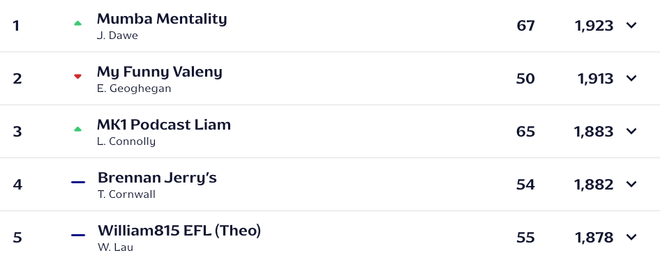 That was the bottom. Now for the top, where Andy Woodman’s making the weather.